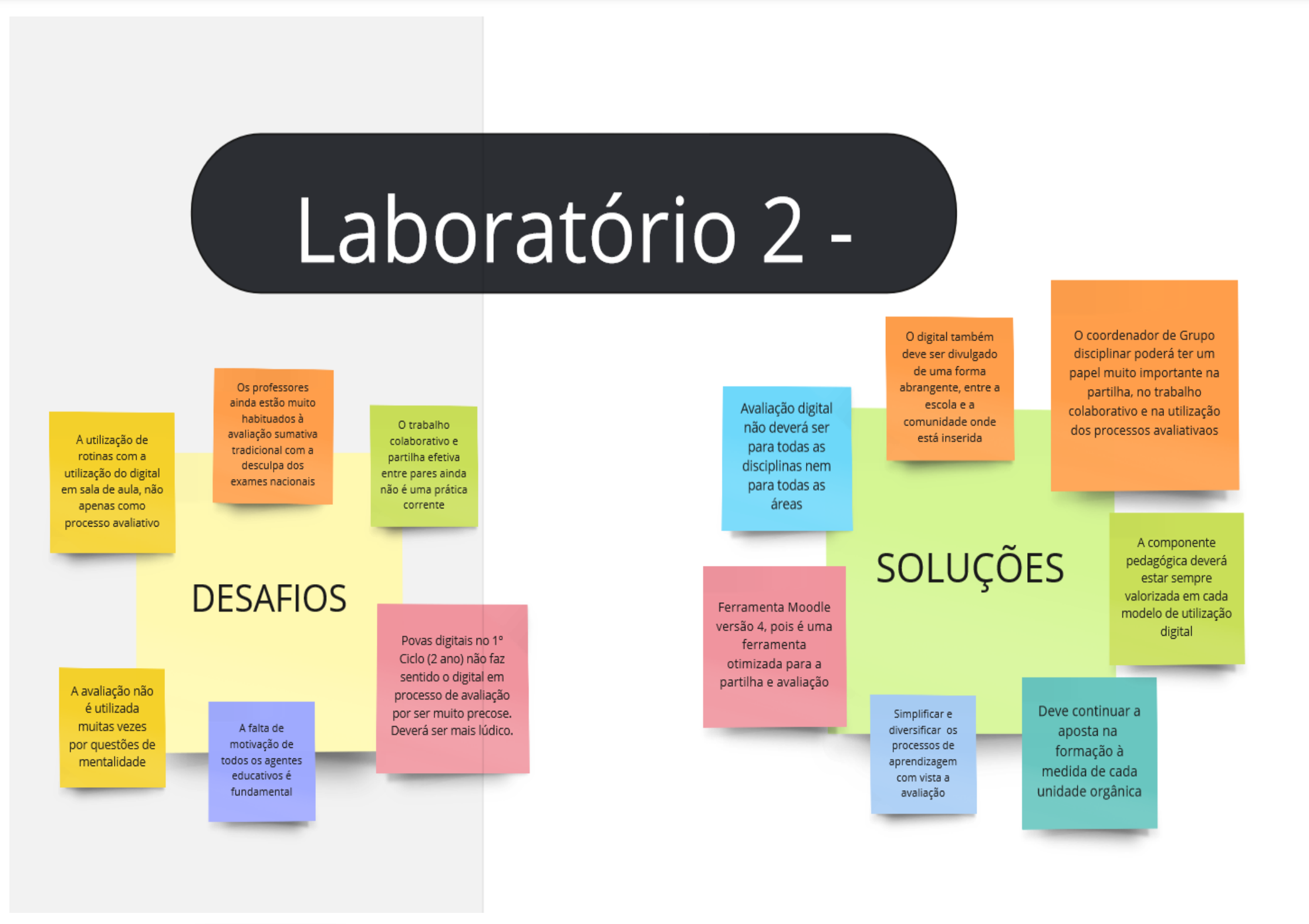 - A discussão dos laboratórios, centrada nos quatro temas escolhidos, resultou num conjunto de conclusões que continuam a validar o digital como algo fundamental na educação, na sua ligação às metodologias e estratégias de aprendizagem ativa, ao desenvolvimento de competências de criatividade, pensamento crítico, comunicação e colaboração.