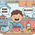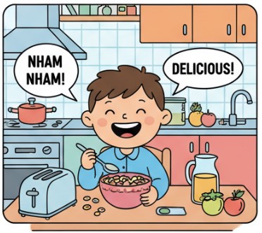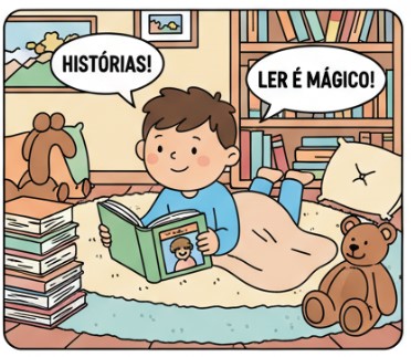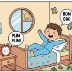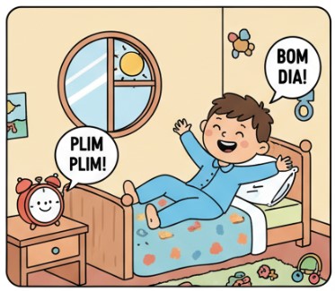 O Professor apresenta ações, através de imagens, criadas por IA (NanoBanana; DALL-E3) e os alunos identificam os verbos associados às ações (da “A Minha Rotina”).
