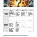 Os alunos preenchem um formulário de autoavaliação e avaliam-se de acordo com os critérios de uma tabela fornecida.
