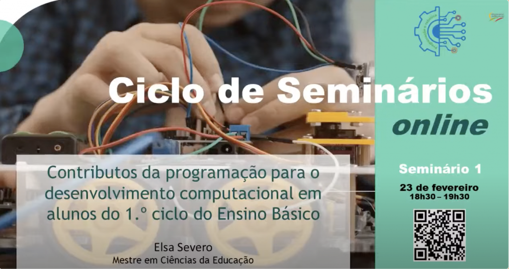 Encontra-se disponível a gravação do primeiro seminário “Contributos da programação para o desenvolvimento computacional em alunos do 1.º ciclo do ensino básico”, realizado no passado dia 23 de fevereiro.
