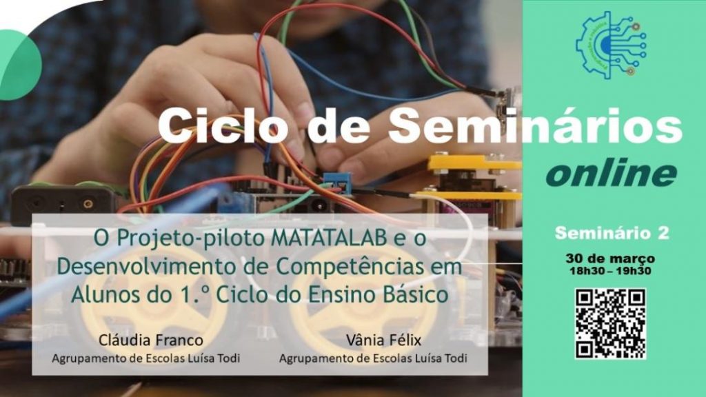 Realiza-se no próximo dia 30 de março (das 18:30 às 19:30) o seminário online “O Projeto-Piloto MATATALAB e o desenvolvimento de competências em alunos do 1.º ciclo do Ensino Básico”. Dinamizado por Cláudia Franco e Vânia Félix, docentes no Agrupamento de Escolas Luísa Todi, este é o segundo de um ciclo de seminários online, organizados pela Direção-Geral da Educação, no âmbito da iniciativa “Programação e Robótica na Escola”. Estes seminários têm como objetivo divulgar práticas de referência, através da utilização de tecnologias digitais, em particular aquelas que procuram desenvolver o pensamento computacional. A participação dos docentes no total dos seis seminários confere-lhes a certificação correspondente a duas Ações de Formação de Curta Duração (AFCD), devidamente acreditadas.